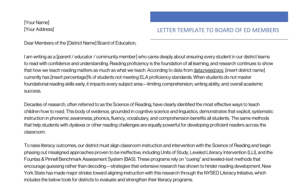 Every message matters. Download and personalize these templates to advocate for stronger literacy practices in your district and across New York.